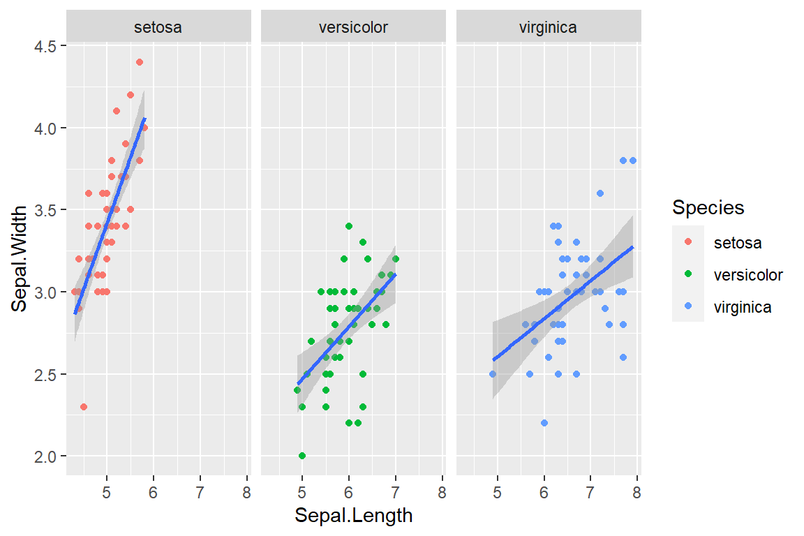geom_smooth(method = "lm") + facet_wrap(~ Species)
