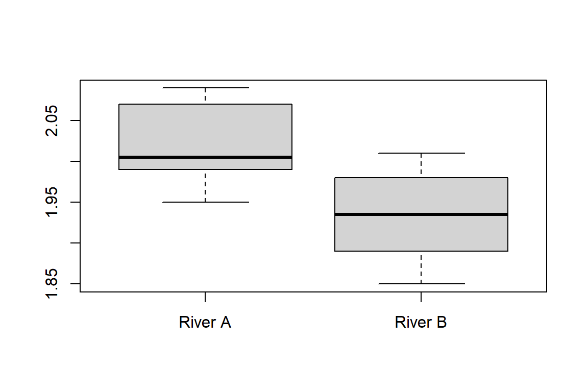 boxplot(River_A, River_B, names = c('River A','River B'))