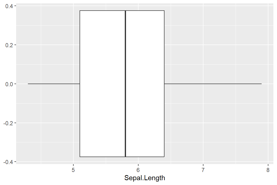ggplot(iris) + geom_boxplot(aes(Sepal.Length))