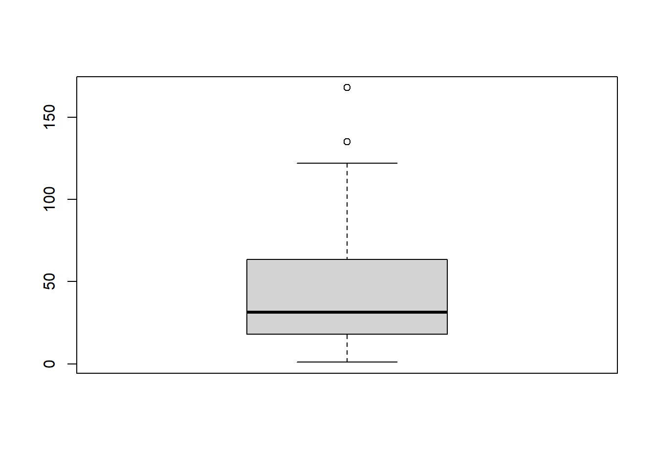 boxplot(iris$Sepal.Width, pch=20, las=2)