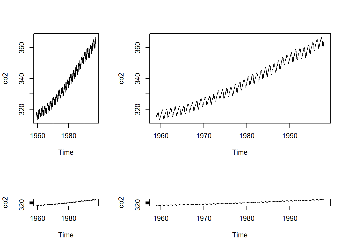 layout(mymat, widths = c(4, 1), heights = c(2, 1)) # Set the ratio between widths and heights